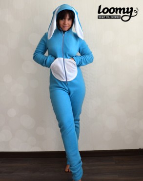 Пижама комбинезон голубо-белая с капюшоном и ушками "Зайчик" 835,80 руб.