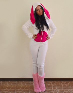 Пижама комбинезон бело-малиновая с капюшоном и ушками "Зайчик" 835,80 руб.