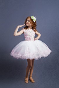 Мини платье с густой фатиновой юбкой, украшенным корсетом апликацией и камнями