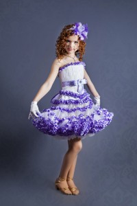Мини платье с темно-фиолетовой лентой, корсет драпированный и украшенный розовым бантиком.