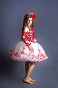 Мини платье с густой фатиновой юбкой, украшенным корсетом апликацией и камнями
