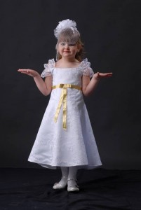 Элегантное гипюровое платье с золотым атласным поясом.